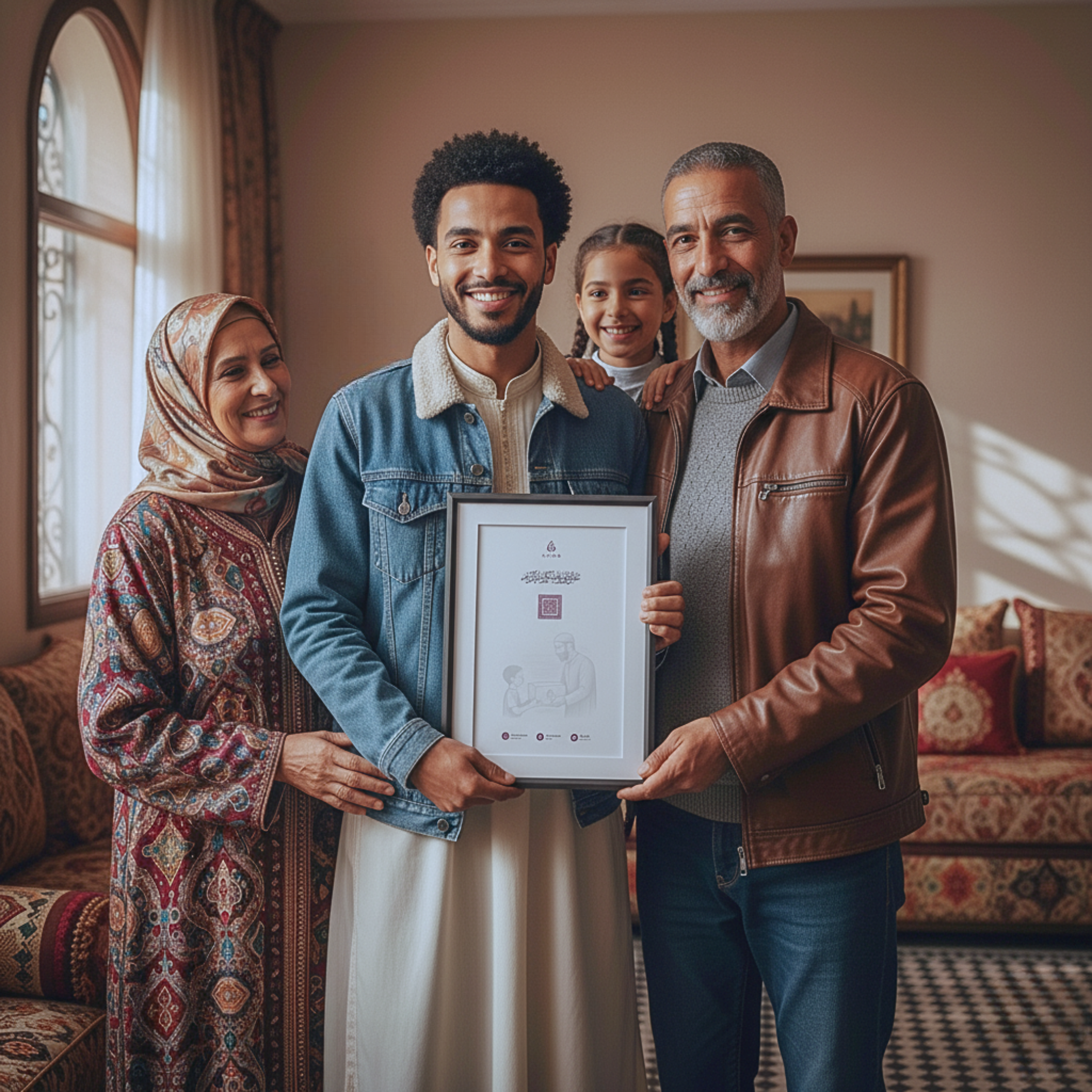 Scan the QR to open the delivery video with duas and your beneficiary’s name.